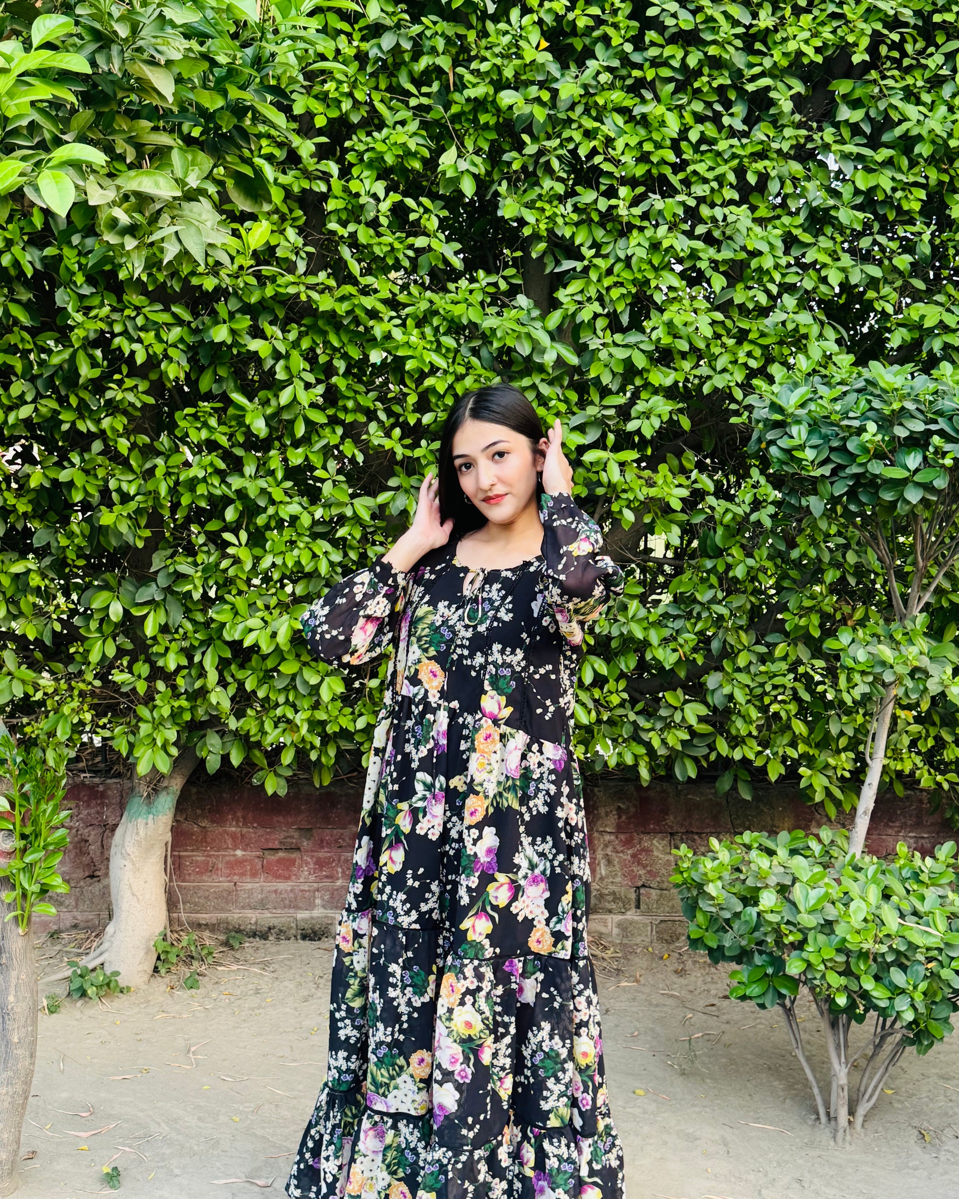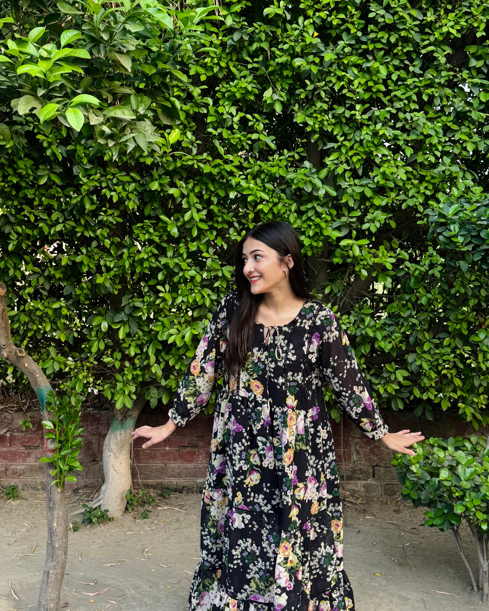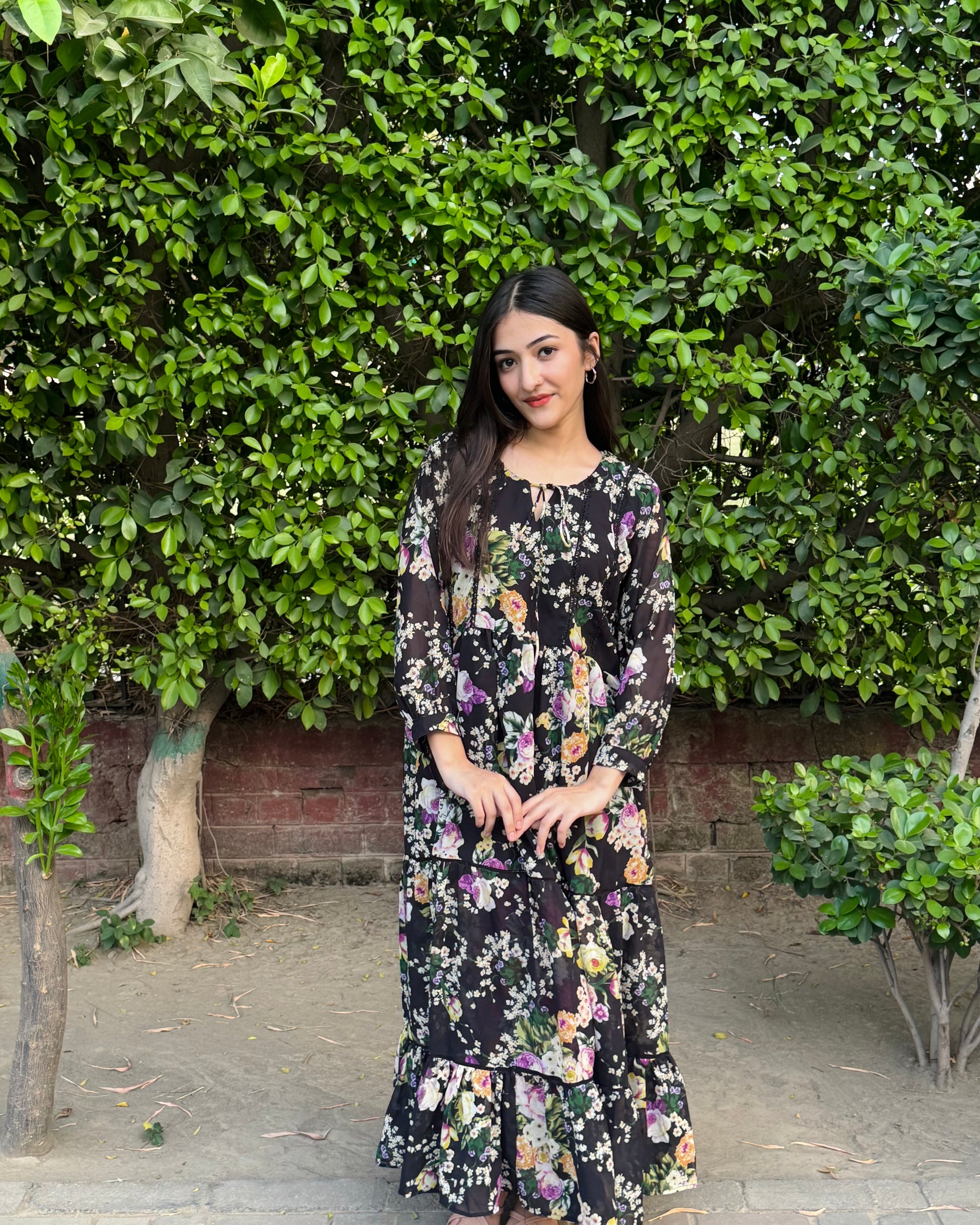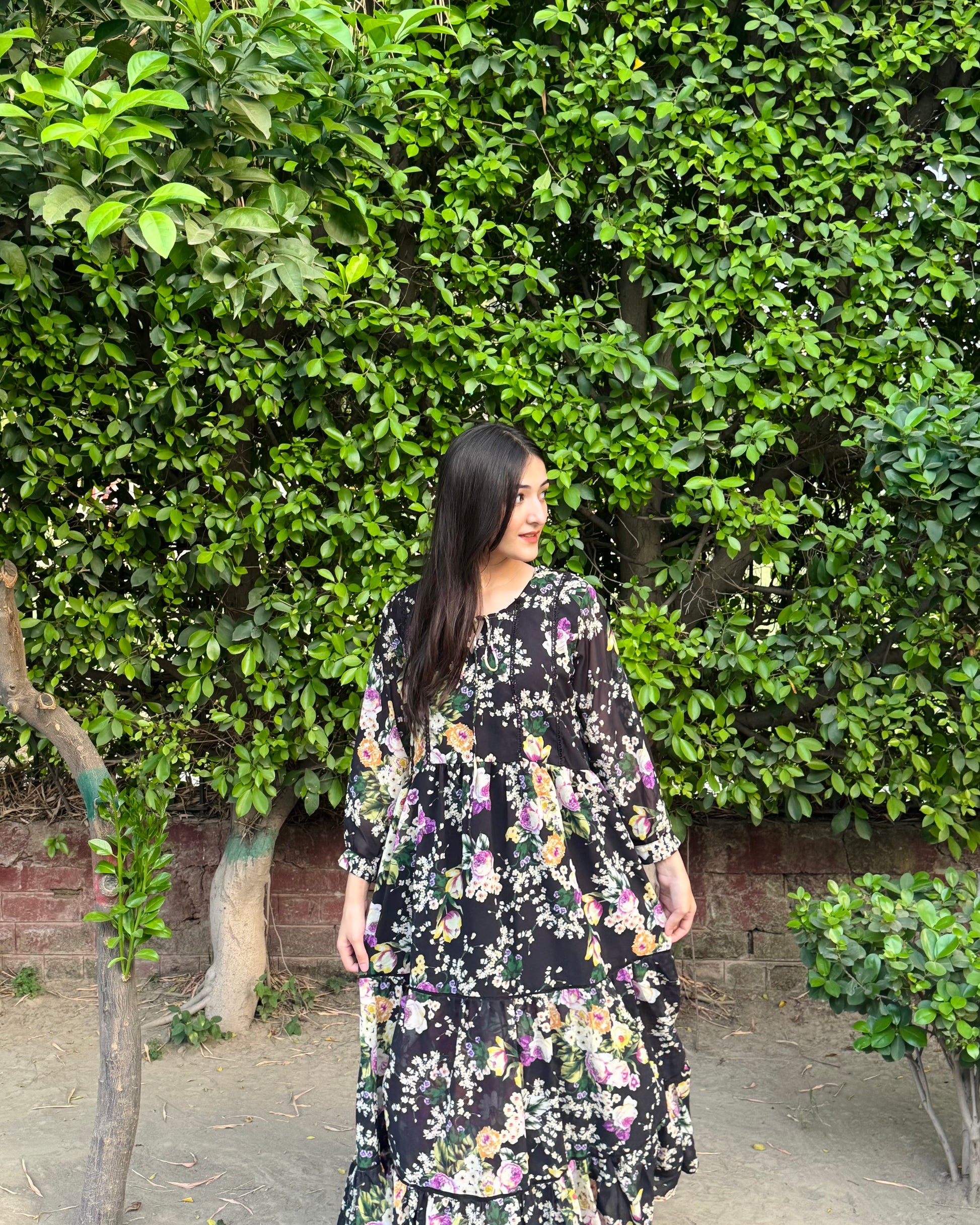 Black chiffon frock with lace detailing